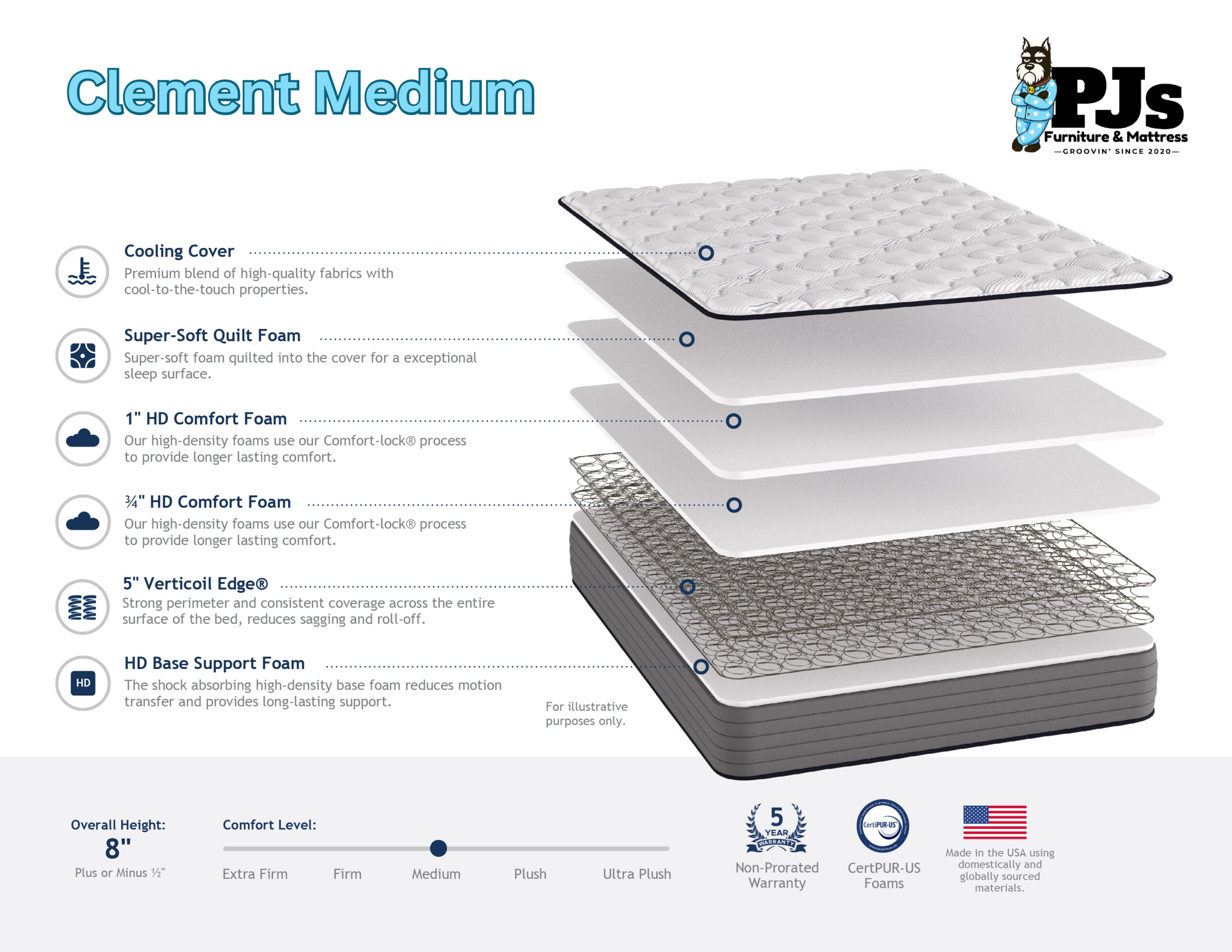 • 3⁄4″ HD Comfort Foam: Our high-density foams use our Comfort-lock® process